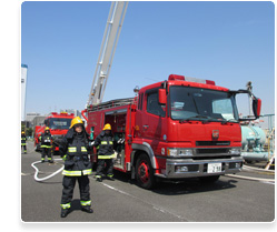火力発電所、原子力発電所に消防自動車を配備し、専門知識を有した当社スタッフが高い使命感をもって、日夜、万全な防災体制を構築しています。また、これまで培ったノウハウを活かし、訓練指導、防災資機材の販売など、お客さまの防災体制の構築についてサポートいたします。